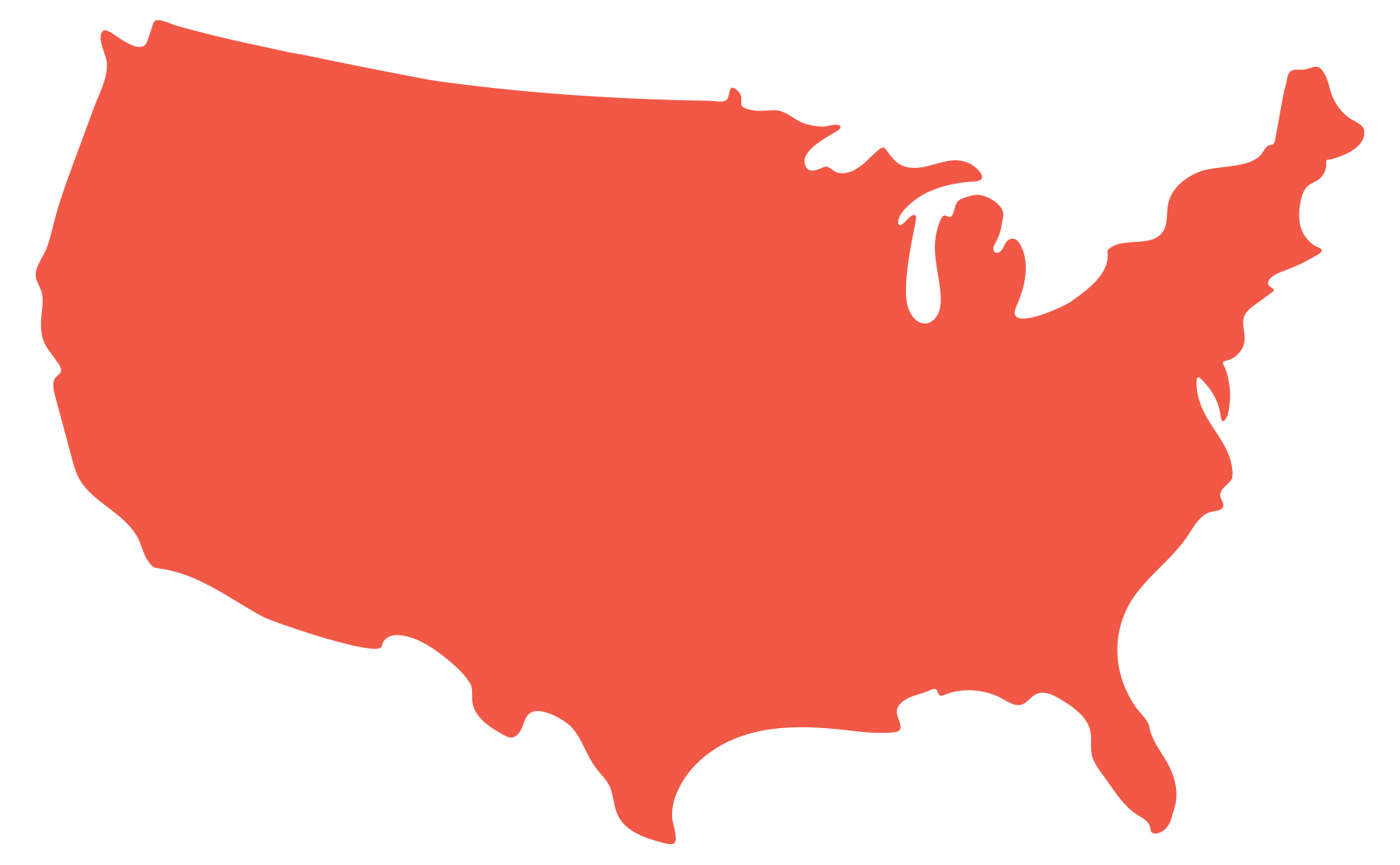 • Red outlined map of United States including clients